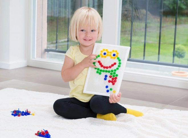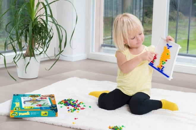 Acest mozaic cu pălărioare LENA este o jucărie didactică grozavă pentru micii creatori. Datorită celor 80 de pălărioare din plastic rezistent, copiii pot compune motive simple sau mai complexe – de la elicopter până la flori – dezvoltându-și de fiecare dată imaginația.