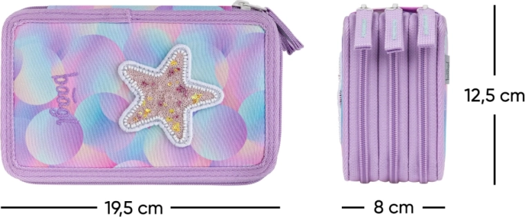 Penarul BAAGL Candy, stilat și extra încăpător, cu trei niveluri, păstrează toate instrumentele de scris ordonate într-un singur loc. Oferă trei compartimente separate, elasticuri pentru creioane cerate groase și markere, cotor întărit pentru închidere ușoară și fermoare fiabile YKK. Alegerea ideală pentru elevii care vor ordine și stil. Penarul este fără conținut.