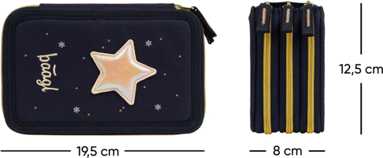 Practic, penarul BAAGL Unicorn Gold cu trei compartimente, în culoare albastru închis cu detalii efectuoase, oferă o organizare bine gândită a rechizitelor școlare. Trei camere separate cu fermoar asigură acces rapid și ordine, în timp ce cotorul întărit facilitează închiderea chiar și când este plin.