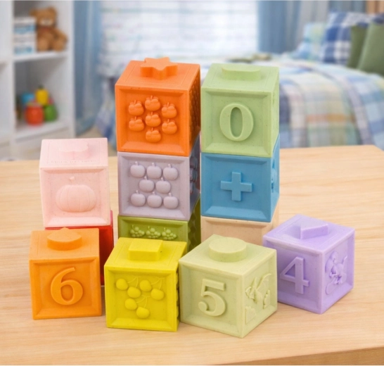Cauciucul moale și elastic permite strângerea cuburilor, construirea în siguranță și prinderea confortabilă. Dimensiunea de 5 × 5 cm este ideală pentru mâinile mici ale copiilor.
