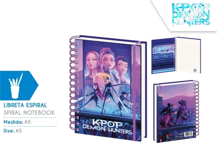 Caiet spirală stilat, format A5, pentru toți fanii K-pop și ai motivului Demon Hunters. Ideal pentru notițe școlare, jurnal și scriere creativă. Spirala rezistentă asigură răsfoire ușoară, iar formatul compact A5 încape în orice geantă.