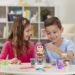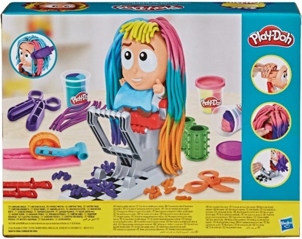 Cu acest set de coafor Play-Doh, coafurile trăsnite prind viață în câteva clipe. Așezați personajul pe scaun, apăsați, iar din cap va „crește” o coamă colorată pe care o puteți tunde, pieptăna și decora. Pasta de modelat multicoloră și accesoriile amuzante transformă fiecare tuns într-o poveste nouă plină de fantezie.