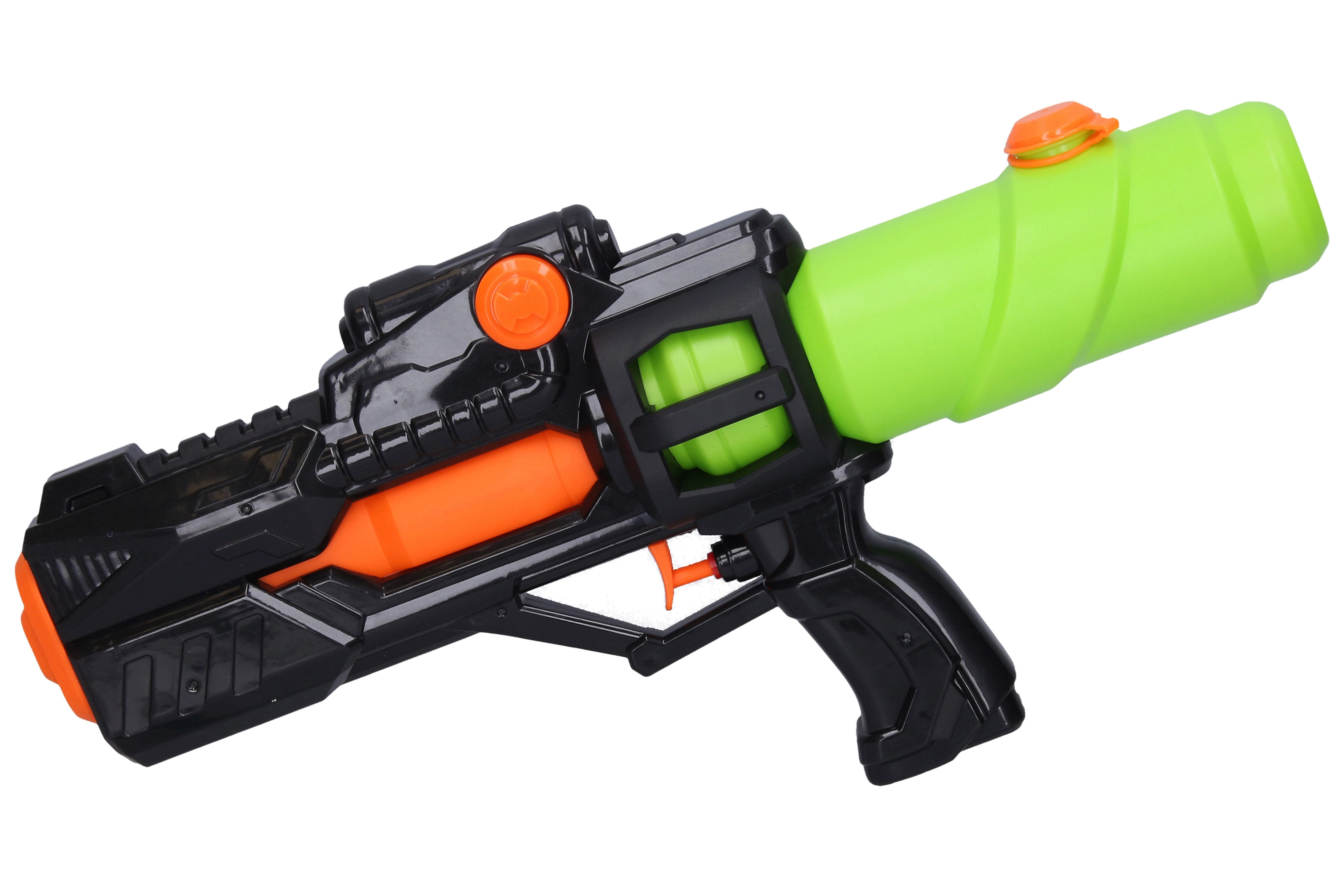 Pistola cu apă, ușoară și totodată rezistentă, oferă o rază excelentă și un jet stabil, devenind partenerul perfect pentru luptele în aer liber. Datorită mânerului ergonomic, se ține bine chiar și în mâini mai mici, iar capacul înfiletabil facilitează reumplerea rapidă cu apă.