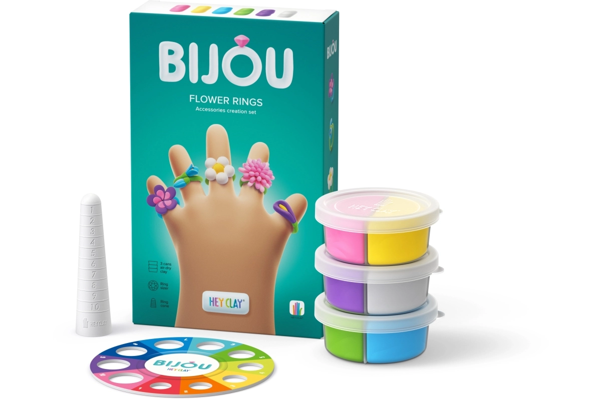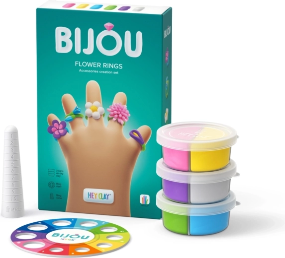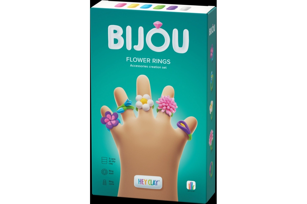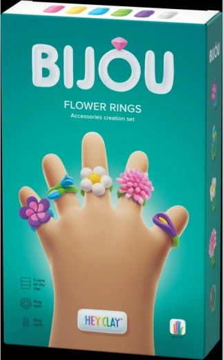 Creează-ți propriile bijuterii originale cu setul creativ HEY CLAY Bijou inele florale. Plastilina moale și ușoară își păstrează ușor forma, iar după 24 de ore la aer se întărește într-o bijuterie rezistentă. Pachetul conține 3 recipiente de plastilină, 2 baze pentru inele, un instrument special de modelare și acces la aplicația mobilă HEY CLAY cu tutoriale video interactive pas cu pas. Ideal pentru copii de la 3 ani.