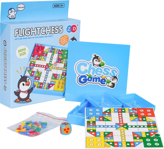 Veselul joc de masă Ludo, cu design de pinguini, aduce distracția clasică pentru întreaga familie. Datorită dimensiunilor reduse, îl împachetezi ușor pentru drum, în mașină sau în vacanță. Jucătorii se succed la aruncarea zarului, își mută pionii pe traseu și încearcă să îi aducă pe toți primii la destinație.