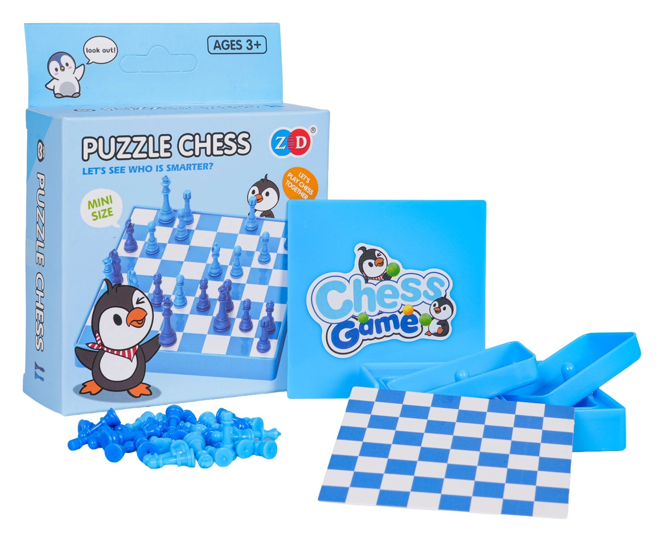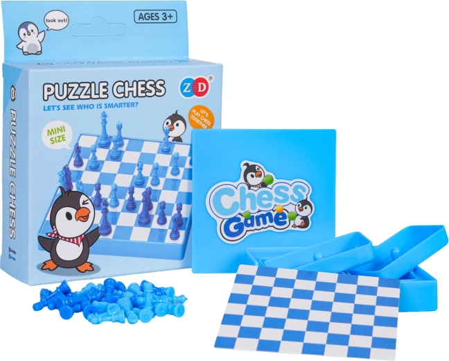 Această variantă jucăușă „cu pinguin” a clasicului, în tonuri de albastru, îi atrage pe copii la prima întâlnire cu șahul și îi va bucura și pe adulți ca versiune de buzunar rapidă pentru călătorii.