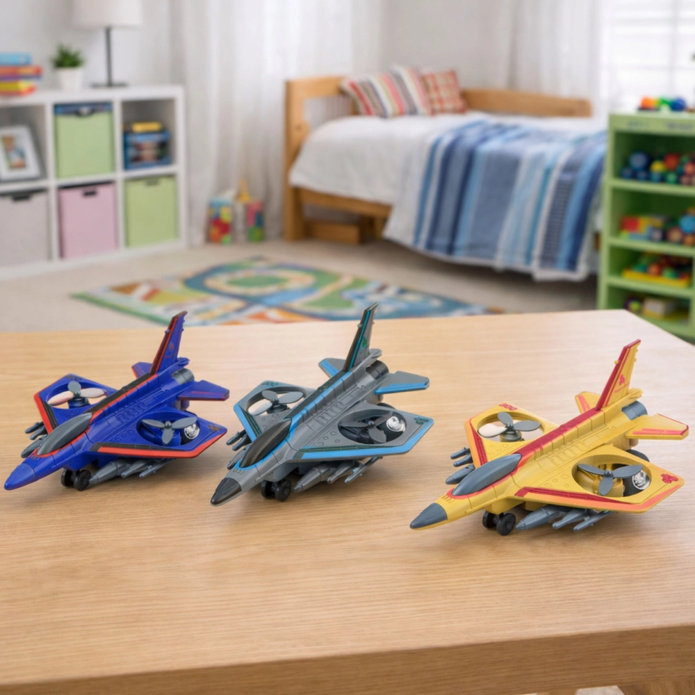 Datorită plasticului durabil și detaliilor atent realizate ale aripilor, cockpitului și armamentului sub aripă, modelul are un aspect veridic și este sigur pentru joaca de zi cu zi. Doar împinge și aeronava pornește lin, ca și cum s-ar pregăti de decolare.