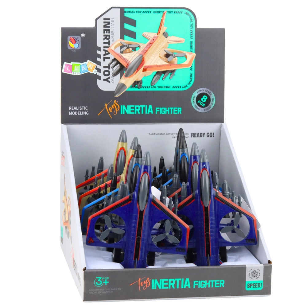 Acest avion militar imaginar cu reacție oferă copiilor ore întregi de distracție. Designul realist, inspirat de avioanele de vânătoare moderne, elicele rotative și mecanismul inerțial stimulează imaginația și crearea propriilor misiuni aeriene.