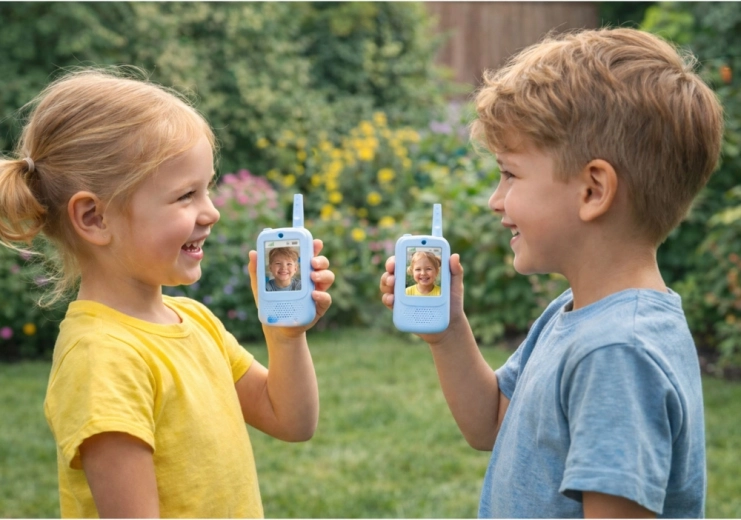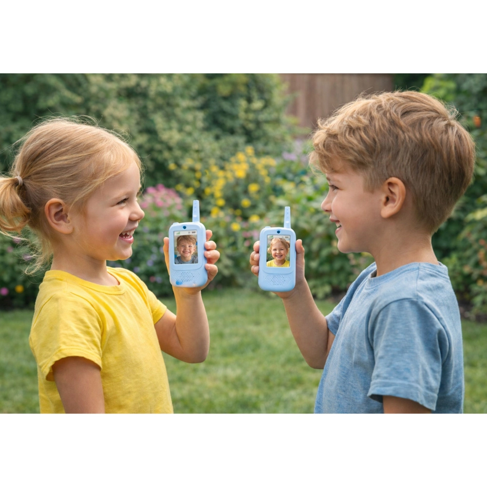 Oferiți copiilor o comunicare distractivă și sigură, acasă și în aer liber. Aceste stații walkie‑talkie albastre pentru copii permit nu doar conexiunea clasică apăsă‑și‑vorbește (PTT), ci și apeluri video pe ecranul integrat, realizarea de fotografii și înregistrarea de videoclipuri. Meniul simplu, cu opțiune de selectare a limbii, face utilizarea ușoară chiar și pentru cei mai mici.