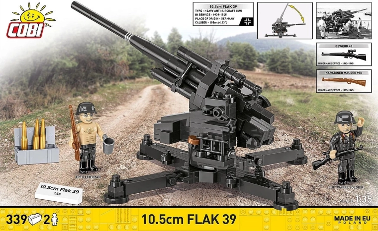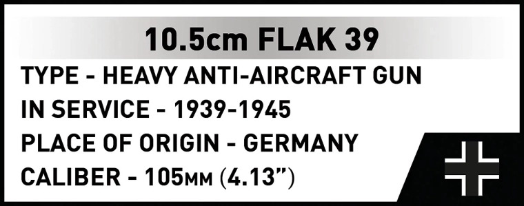 Modelul 10,5 cm Flak 39 aduce în lumea seturilor de construcție realismul tehnicii antiaeriene grele din perioada celui de-al Doilea Război Mondial. Construcția robustă, mecanismele bine gândite și autenticitatea istorică îl fac o piesă ideală pentru colecționari și pasionați. La scara 1:35 se evidențiază excelent ca piesă centrală în vitrină sau ca parte a unui dioram mai mare.