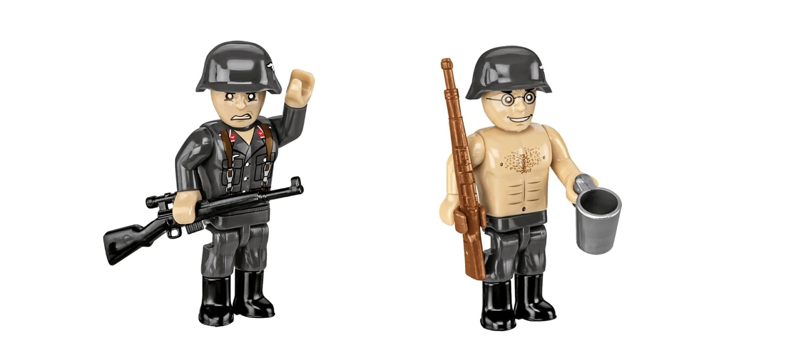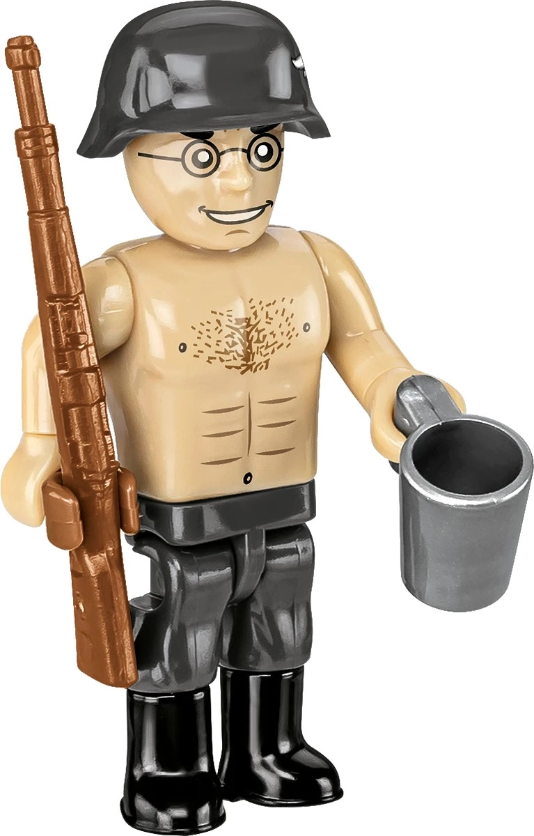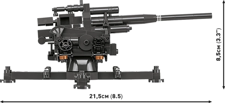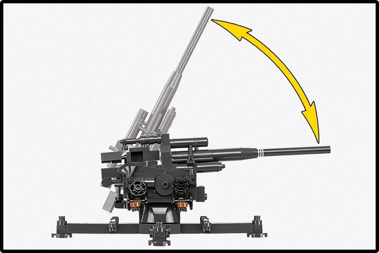 Două minifigurine complet articulabile, cu armament și accesorii, dau viață scenei și evidențiază utilizarea de luptă a tunului antiaerian.