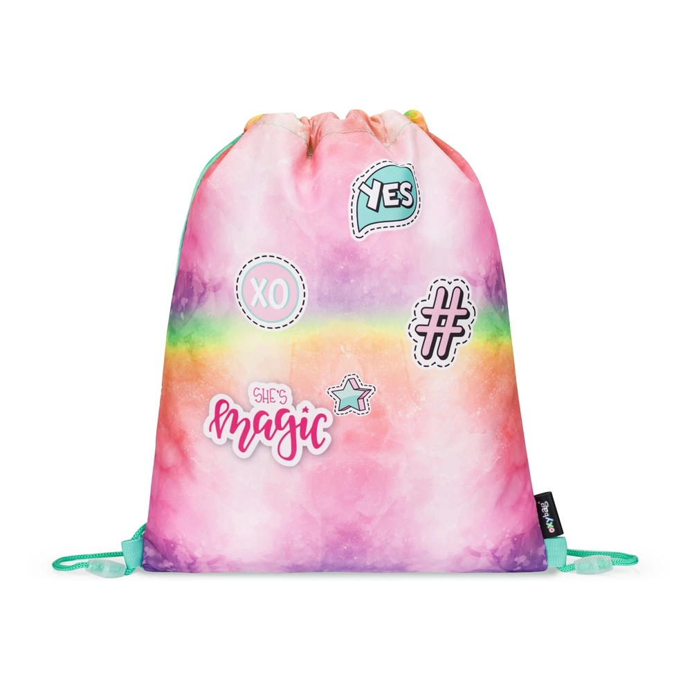 Setul școlar OXY GO Magic combină designul curcubeu atrăgător cu o funcționalitate ridicată pentru fiecare zi de școală. Elementul principal este rucsacul ușor cu spate ergonomice și respirabile, bretele de umăr reglabile și cârlige inteligente pentru fixarea bretelelor mai lungi. Compartimentul principal mare și buzunarele interne păstrează manualele, caietele și gustarea bine organizate, în timp ce baza rigidă impermeabilă protejează conținutul de umezeală și murdărie.