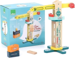 Descoperă distracția din port cu macara din lemn Vilac Vilacity, care datorită prinderii magnetice mută cu ușurință containerele. Macaraua este rotativă, permite deplasarea verticală și orizontală a sarcinii și este pe deplin compatibilă cu colecția Vilacity. Fabricată ecologic și prietenoasă cu mediul.