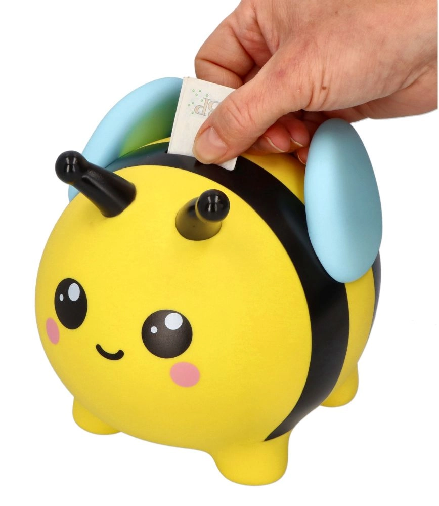Această albinuță drăgălașă transformă economisirea în distracție. Datorită dimensiunilor de 21 × 14,7 × 15,8 cm, încape o mulțime de monede și bancnote, iar suprafața netedă, colorată și expresia simpatică o fac un accesoriu grozav pentru camera copilului. PVC-ul rezistent asigură durabilitate îndelungată și întreținere ușoară.