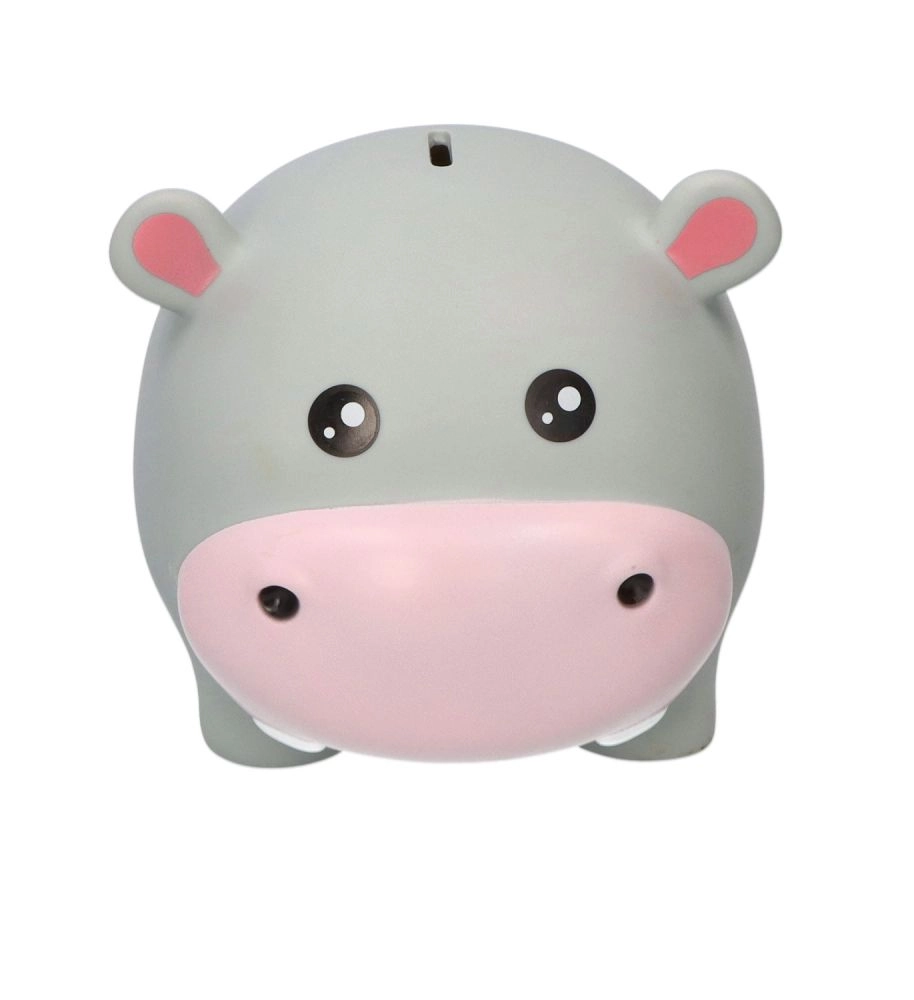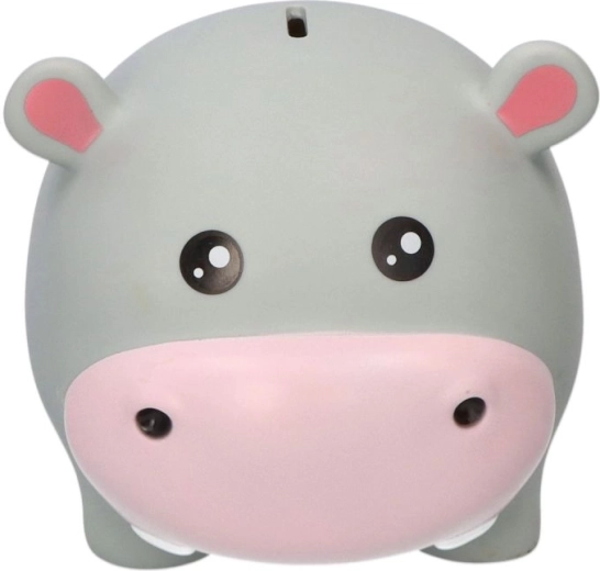 Forma jucăușă a hipopotamului încurajează obiceiul economisirii regulate și completează frumos camera copilului sau biroul.