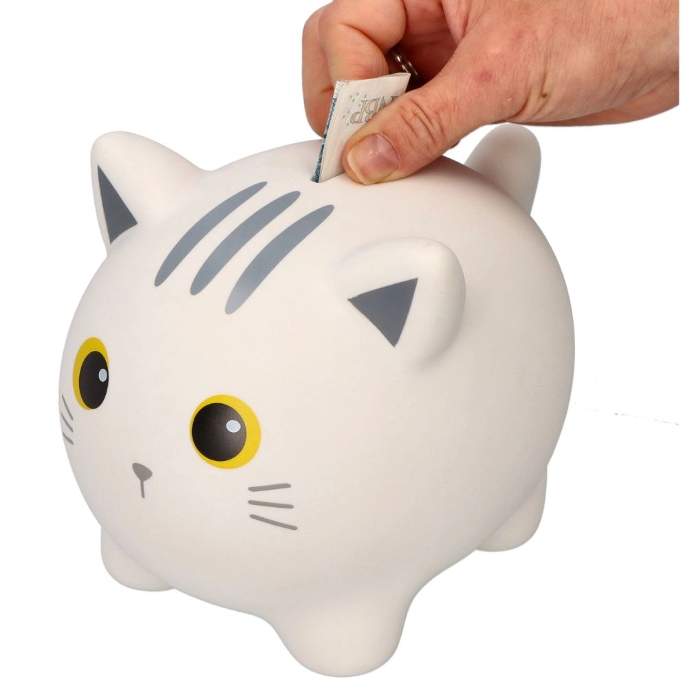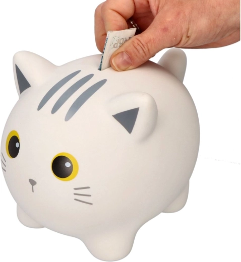 Pușculiță mare, drăguță și practică, în forma unei pisici albe, confecționată din material PVC durabil. Ideală pentru depozitarea monedelor și bancnotelor, un cadou grozav pentru copii și adulți. Datorită dimensiunilor de 20 × 14,5 × 15 cm, oferă suficient spațiu și, în același timp, este o decorațiune stilată pentru cameră. Produsul îndeplinește cerințele CE și se remarcă prin material PVC durabil și capacitate peste medie.