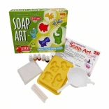 Lăsați-vă copiii de la 5 ani să se joace creativ! Vă prezentăm modalitatea ideală prin care copiii se pot juca util. Setul creativ - PEXI SOAP ART Producerea săpunurilor - permite realizarea propriilor săpunuri parfumate chiar la dumneavoastră acasă. Dintr-un set veți realiza 5 - 8 săpunuri parfumate și colorate. Pachetul conține: bloc de 200 g de bază de săpun translucidă, forme, bol pentru topire și amestecare (pentru utilizare în cuptorul cu microunde), 3x bețișor de amestecare, 3x colorant lichid, 2x aromă lichidă, mănuși de protecție, instrucțiuni detaliate și indicații de siguranță. Dimensiuni ambalaj: 26 x 20 x 7 cm. Potrivit pentru copii de la 5 ani.