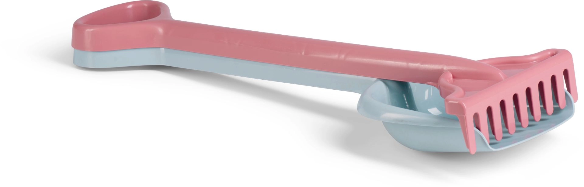 Formele ergonomice cu mânere de tip D și margini netede, rotunjite asigură o utilizare confortabilă și sigură chiar și pentru cei mai mici. Datorită greutății reduse de 0,288 kg și lungimii de 56 cm, lopata și grebla se manevrează foarte bine atât pe plajă, cât și în lada de nisip.