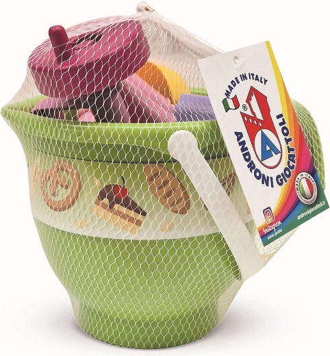 Set distractiv și sigur pentru micii „pătiseri” la groapa cu nisip. Acest set ANDRONI din 6 piese, din plastic italian de calitate, include un gălețuș în formă de bol, forme pentru guguluf și prăjitură, lingură pentru înghețată și tel manual. Ușor, rezistent și ideal pentru dezvoltarea imaginației și a motricității fine a copiilor începând de la 10 luni.
