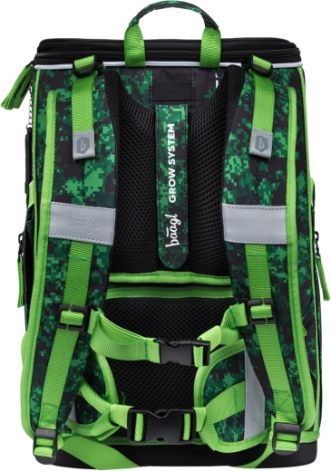 Ghiozdanul Baagl Zippy Plus cu motivul MINECRAFT Boom este alegerea ideală pentru copiii din clasa I. Datorită corpului rigid și întărit, își păstrează excelent forma și stă în picioare singur, facilitând depozitarea caietelor și manualelor. Sistemul reglabil pentru spate permite setarea ghiozdanului pe trei dimensiuni diferite, astfel încât crește odată cu copilul. Bretelele de umăr complet ajustabile și centura lombară detașabilă asigură purtare confortabilă și sănătoasă pe tot parcursul zilei.