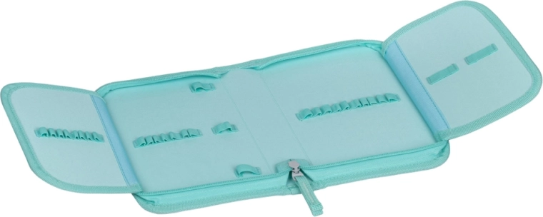 Penarul cu un singur etaj și două clape se deschide complet pentru orientare rapidă. Are benzi elastice ferme potrivite și pentru creioane triunghiulare, buzunărel pentru mărunțișuri, fereastră pentru orar și este fabricat din material reciclat. Săculețul cu buzunar frontal cu fermoar este ideal pentru încălțăminte de interior sau sport, este din material rezistent, lavabil și datorită agațătorii pentru cataramă se prinde ușor de rucsac sau ghiozdan.