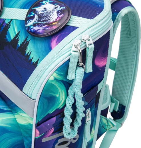Setul Zippy Plus Aurora este conceput să crească odată cu copilul și să păstreze echipamentul școlar organizat într-un singur loc. Ghiozdanul are sistem dorsal glisant cu trei dimensiuni, bretele reglabile, centură lombară detașabilă și bază solidă pentru stabilitate. Spațiul interior este completat de un organizator și un buzunar termo pentru gustare, iar materialul reciclat impermeabil, elementele reflectorizante și fermoarele YKK asigură fiabilitate. Aspectul poate fi ușor personalizat de copii datorită insignelelor interschimbabile.
