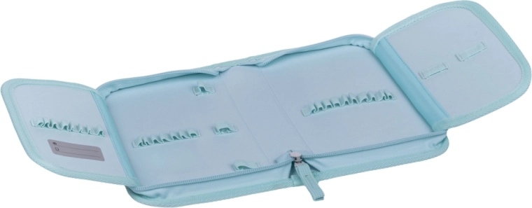 Penar cu un singur etaj, două clapete, fermoar YKK, buzunărel și fereastră pentru orar. Săculeț ușor cu buzunar cu fermoar, șnururi rezistente și agățătoare pentru prindere de rucsac.