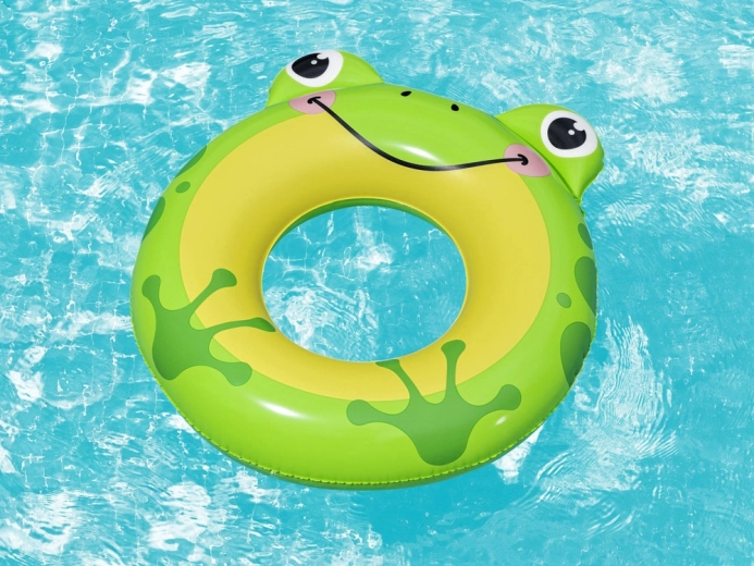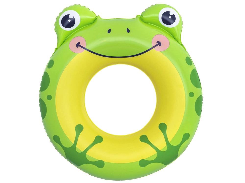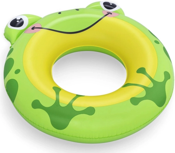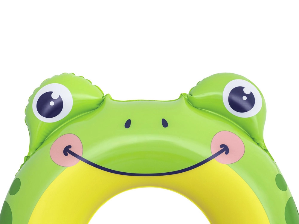 Chipul vesel al broaștei, ochii și detaliile cu buline îi motivează pe copii la jocuri acvatice și sporesc vizibilitatea la suprafață.