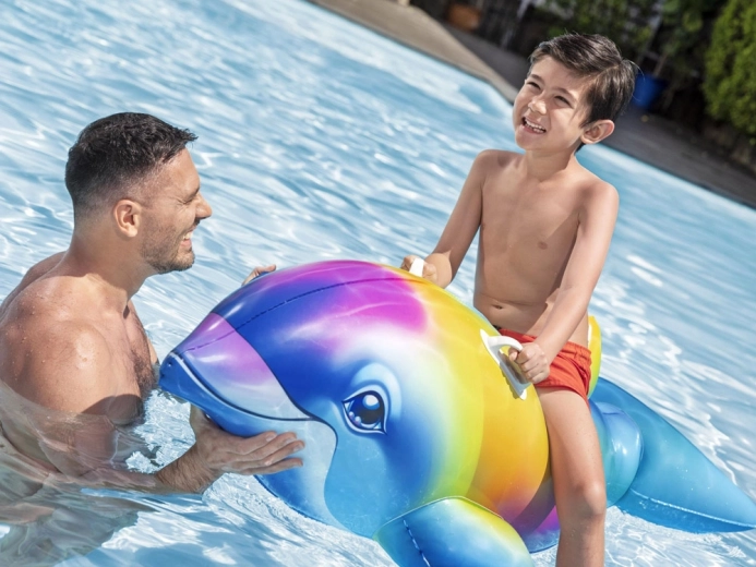 Delfinul de călărit BESTWAY este alegerea ideală pentru distracția acvatică a copiilor. Datorită celor două mânere robuste, urcarea și menținerea pe parcursul mișcării sunt ușoare și sigure, în timp ce cele două camere de aer independente măresc stabilitatea pe apă. Materialul PVC de calitate rezistă la utilizarea zilnică și contribuie la o durată de viață îndelungată.