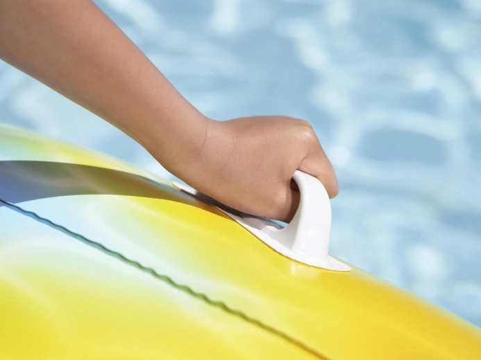 Două mânere integrate facilitează urcarea, menținerea echilibrului și manevrarea pe apă – copiii se simt mai încrezători și în siguranță.