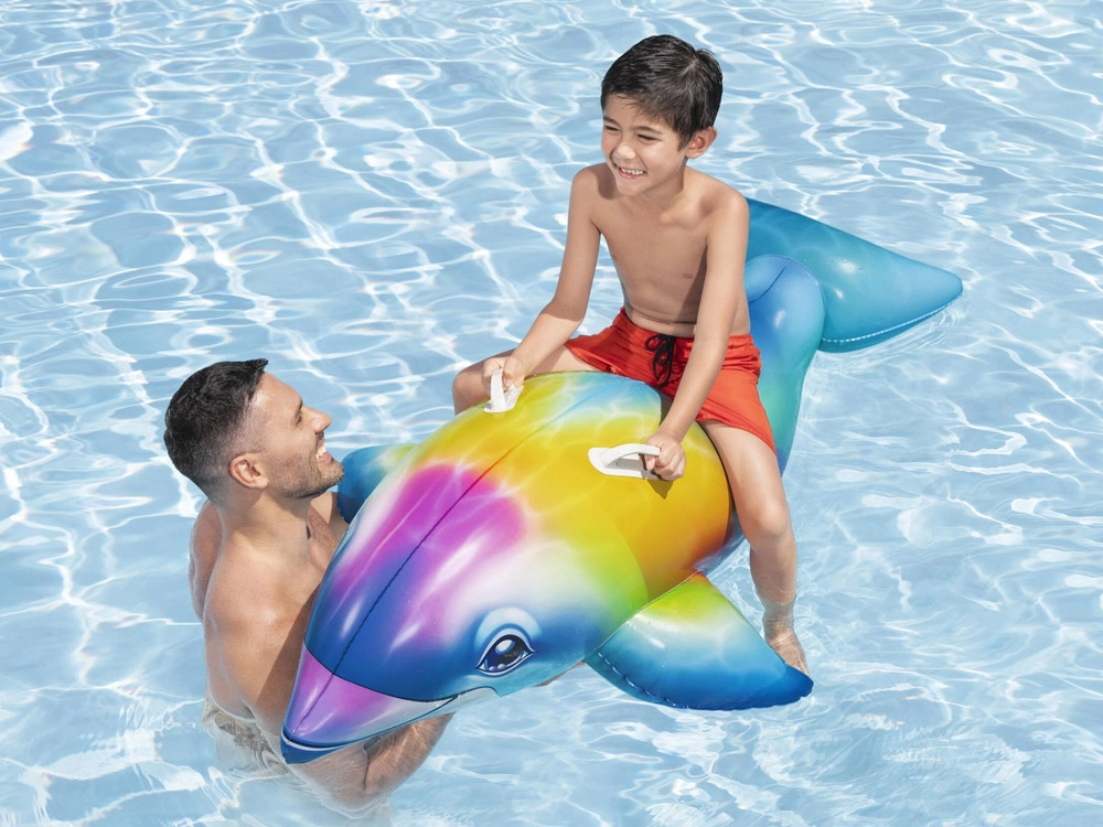 Delfinul mare, cu efect multicolor, este perfect pentru piscină, lac sau mare liniștită – invită la joacă și relaxare.