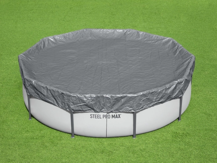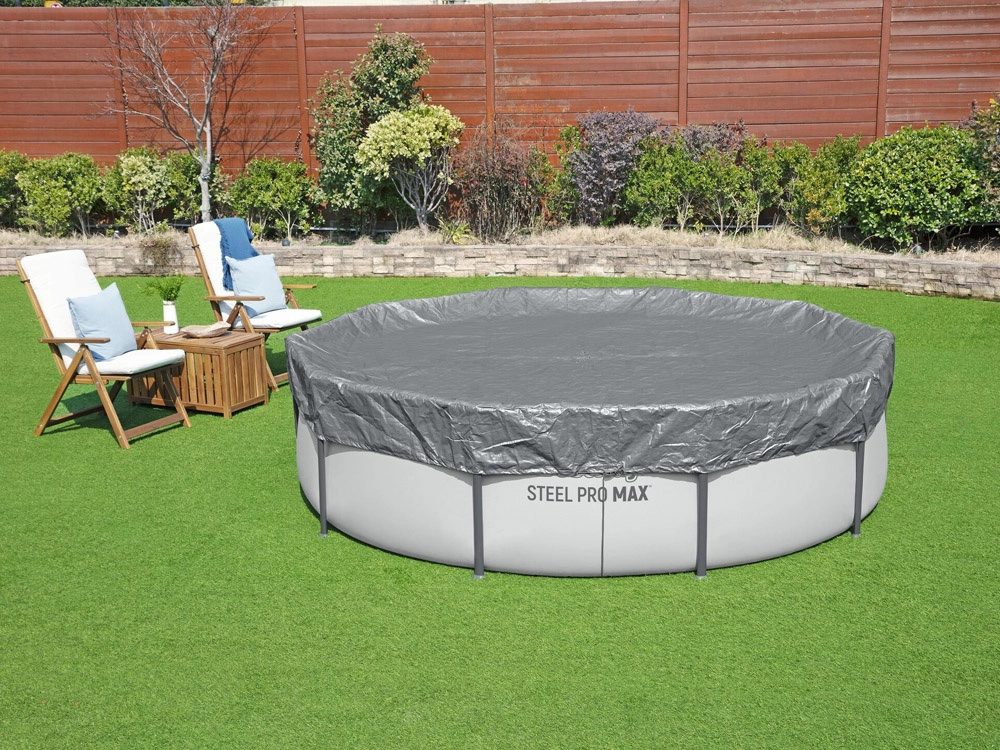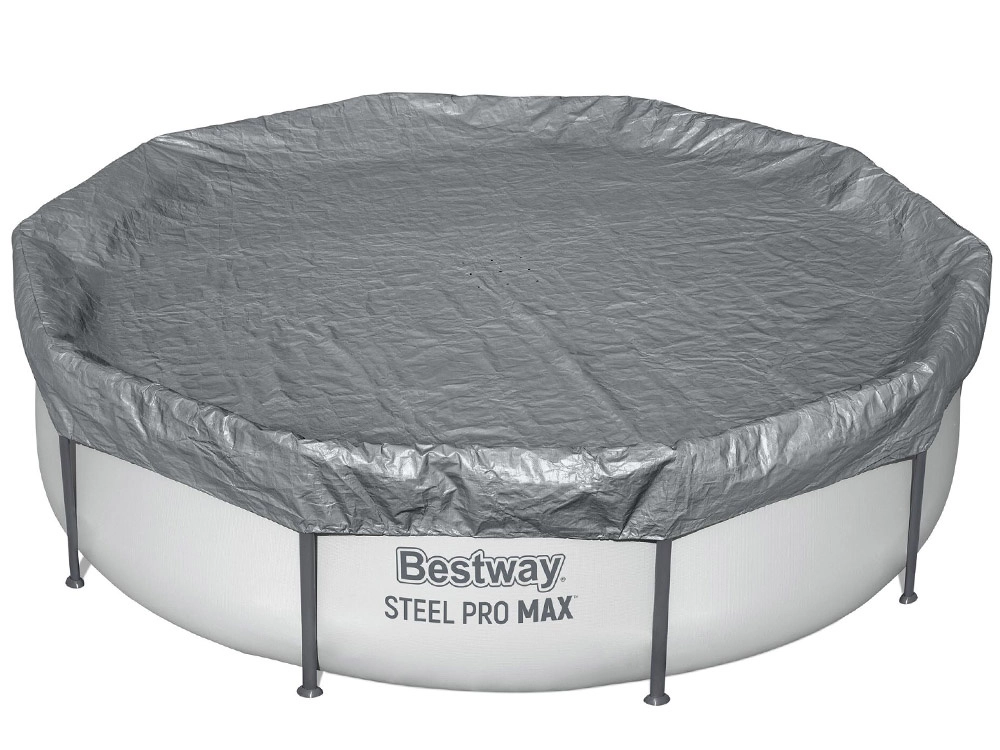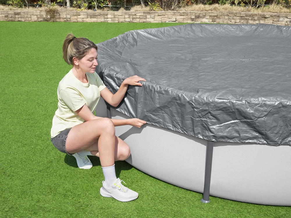 Husa premium pentru piscină rotundă cu diametrul de 3,05 m de la BESTWAY protejează în mod fiabil apa împotriva frunzelor, ierbii și murdăriei. Este fabricată din material întărit, rezistent la UV cu tehnologia Polar‑Shield, care asigură flexibilitate chiar la îngheț până la −25 °C. Orificiile de drenaj practice previn acumularea apei la suprafață, iar prinderea rezistentă la vânt menține husa bine fixată la locul ei.