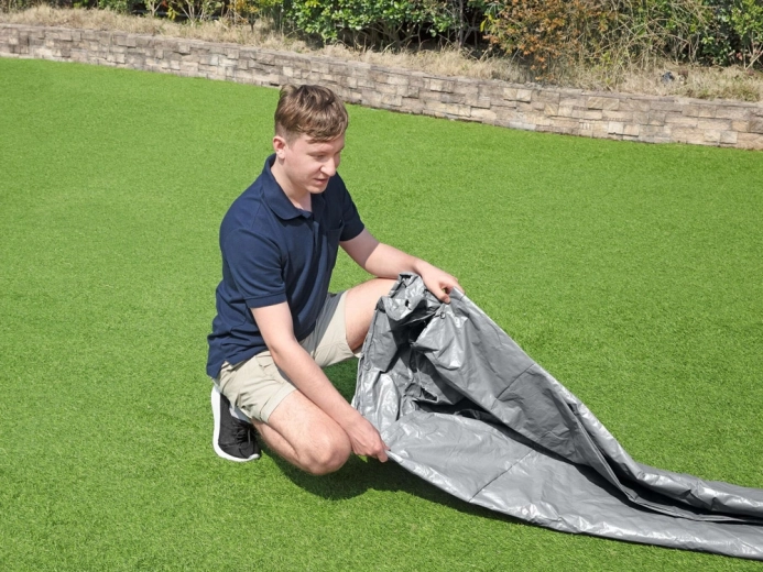 Ingenioasele orificii de drenaj permit trecerea apei de ploaie, astfel încât pe husă nu se formează bălți. Mecanismul de strângere rezistent la vânt și șnurul de reglare asigură o aderență fermă pe contur, pentru ca husa să rămână pe poziție chiar și în condiții meteo nefavorabile.