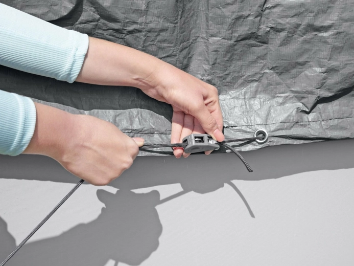 - sistem de strângere rezistent la vânt cu șnur și blocator