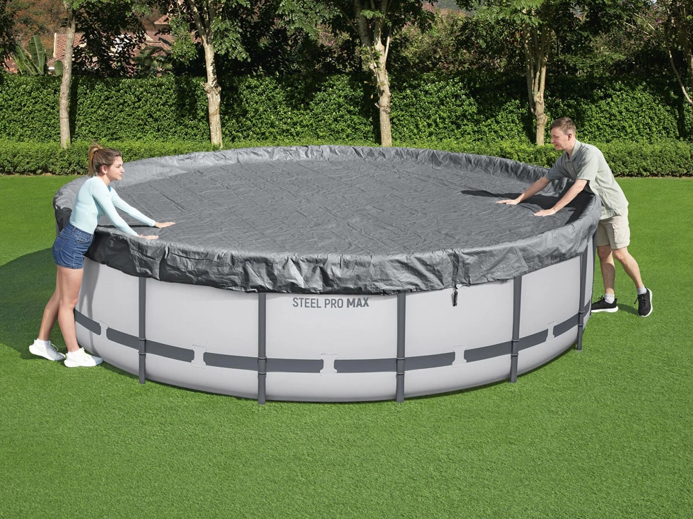 Mențineți apa din piscină mai curată pentru mai mult timp. Prelata premium BESTWAY cu diametrul de 4,57 m este concepută pentru piscine supraterane rotunde și îmbină rezistența, protecția UV și fixarea fiabilă. Orificiile de drenaj integrate previn formarea bălților la suprafață și facilitează utilizarea zilnică.