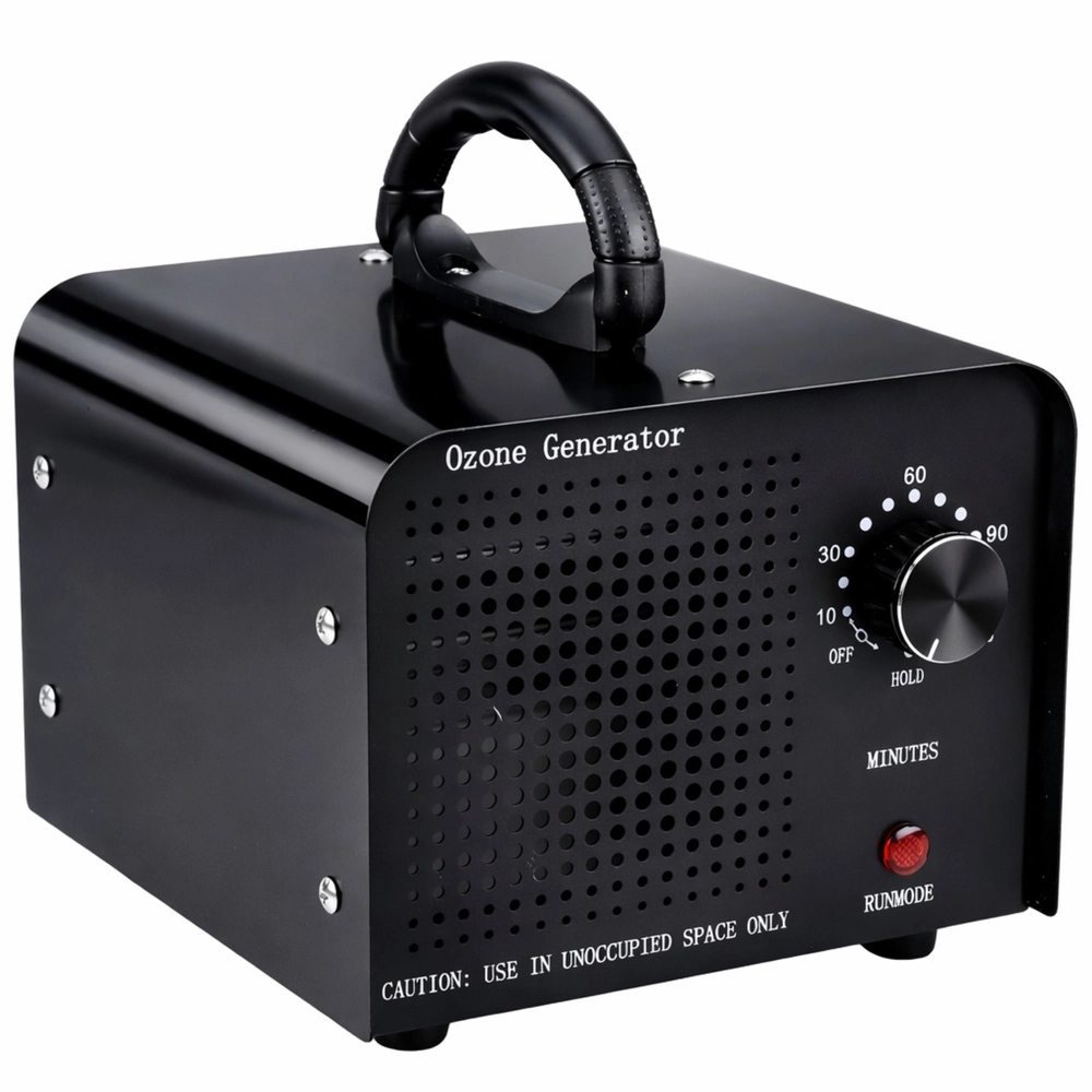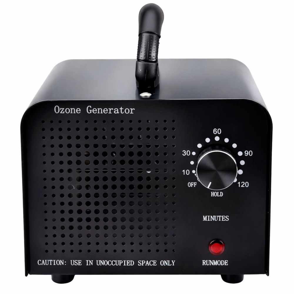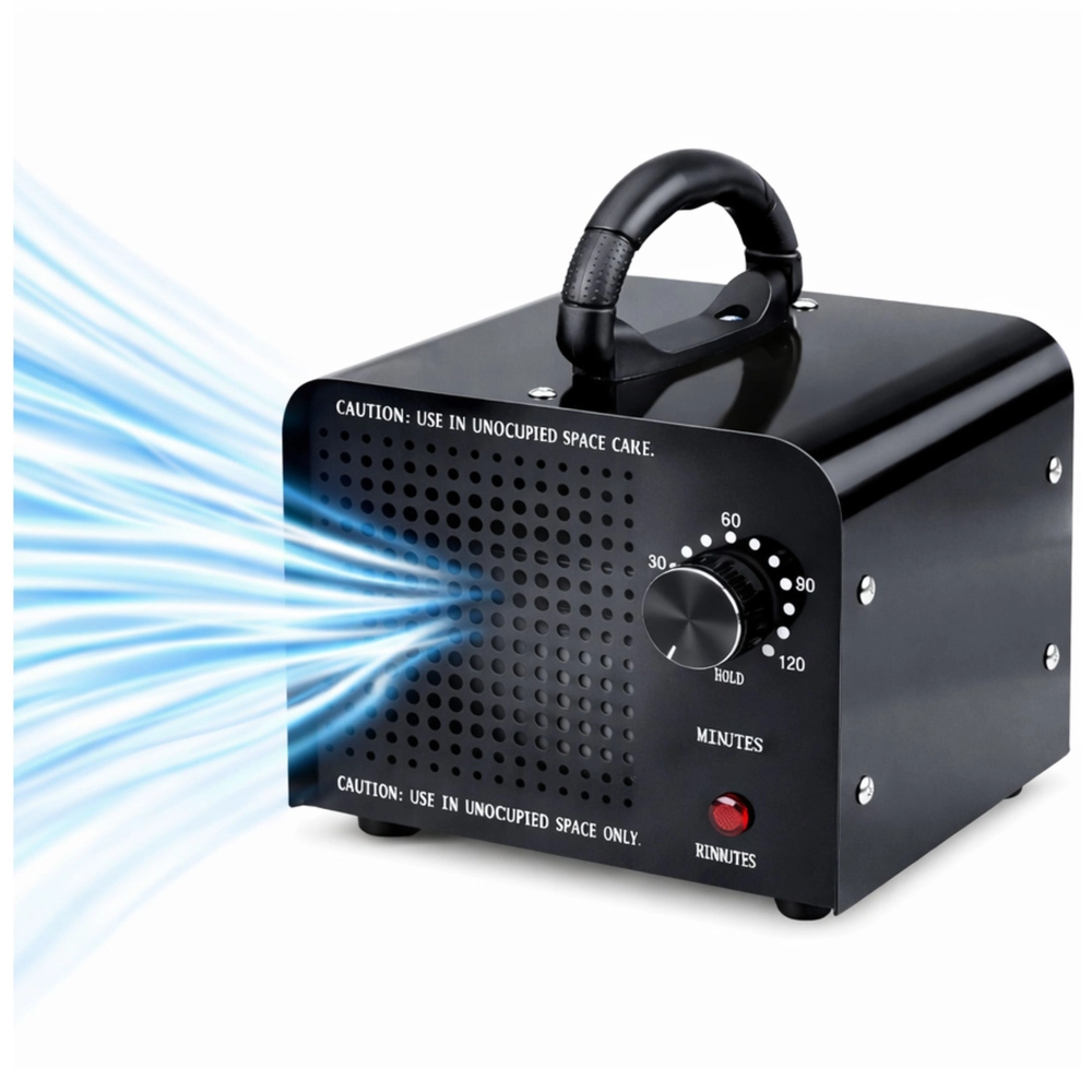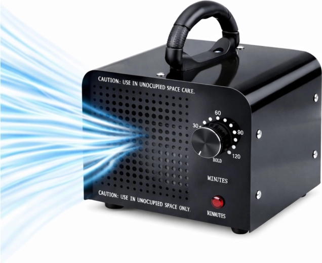 Controlul este extrem de simplu – temporizatorul mecanic 1–120 minute permite adaptarea ciclului la dimensiunea spațiului și la gradul de contaminare. După expirarea timpului setat, dispozitivul se oprește automat. Construcția metalică masivă, picioarele stabile și ventilatorul încorporat asigură o durată lungă de viață și o distribuție uniformă a ozonului.