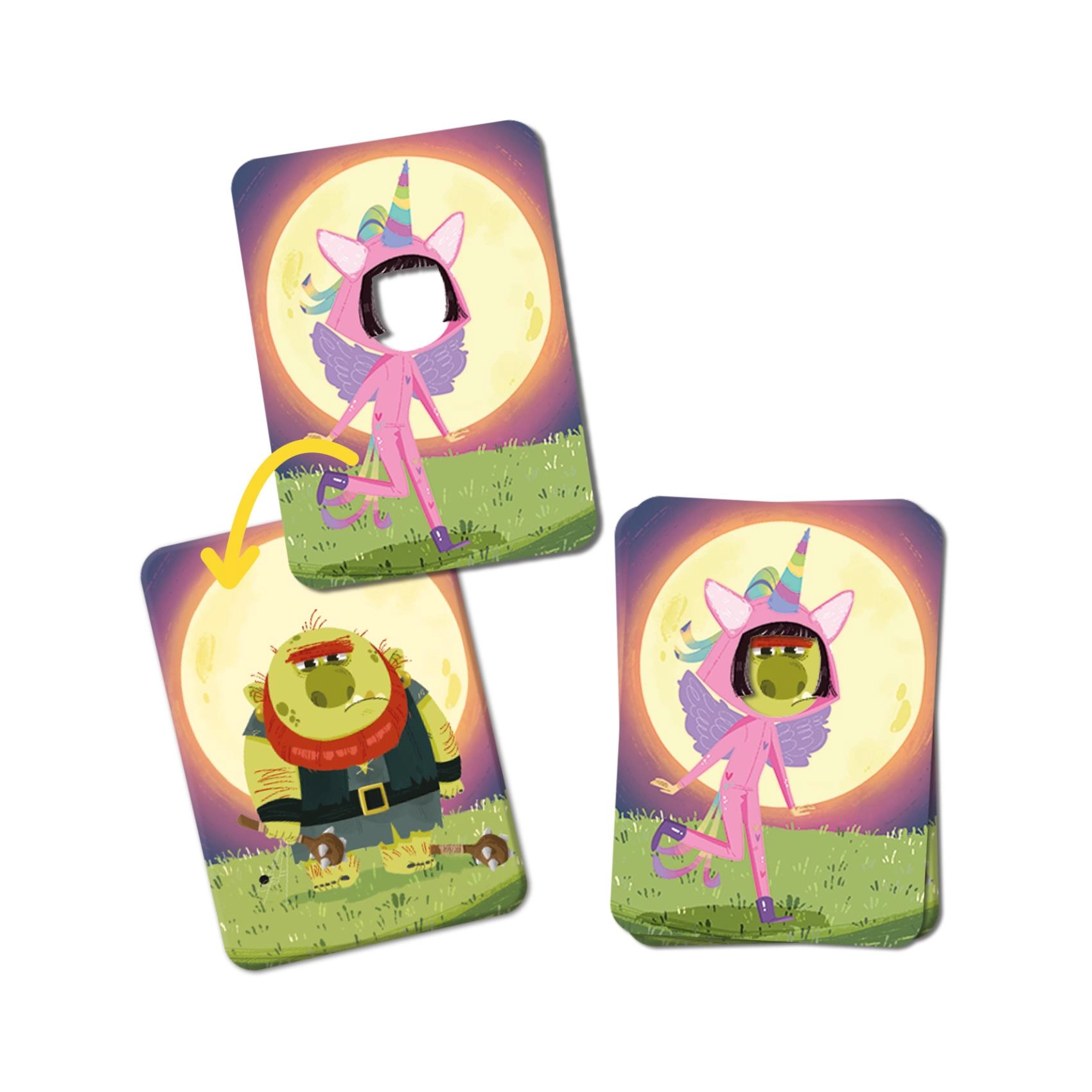 Jucătorii alternează rolurile de mag și monstru, încearcă să-și amintească cât mai multe deghizări trăsnite și să le identifice corect. Cutiuța compactă 9 × 13 × 4 cm încape în rucsac sau geantă, astfel că distracția este mereu la îndemână.