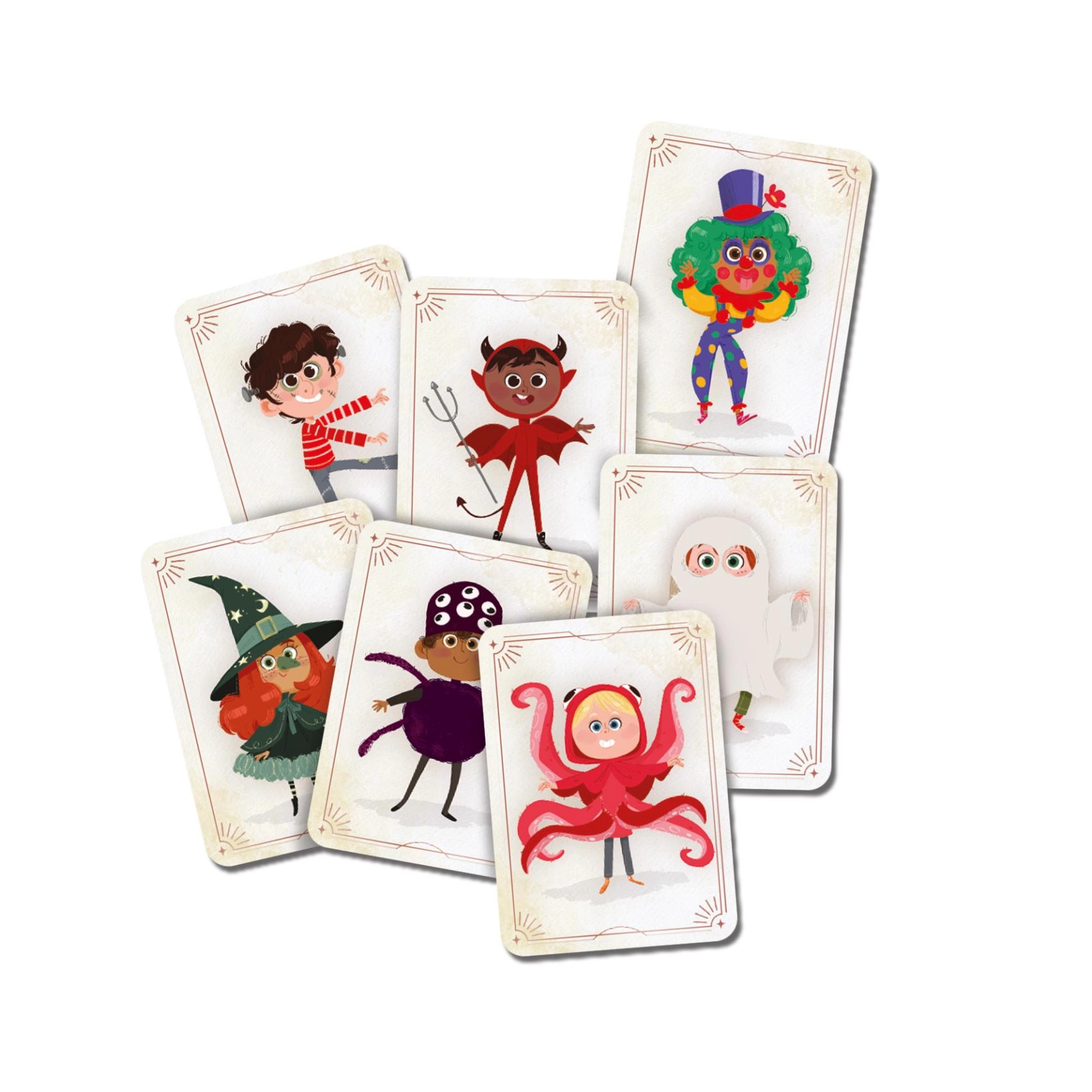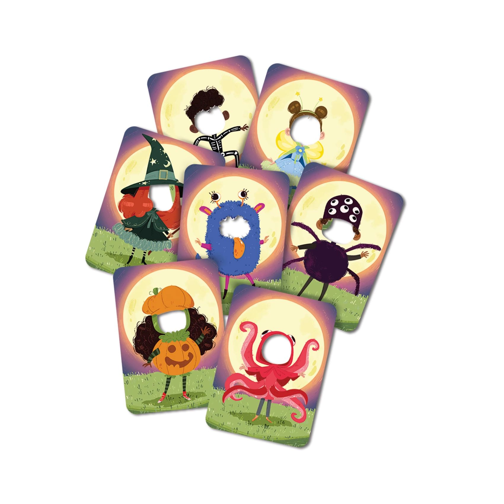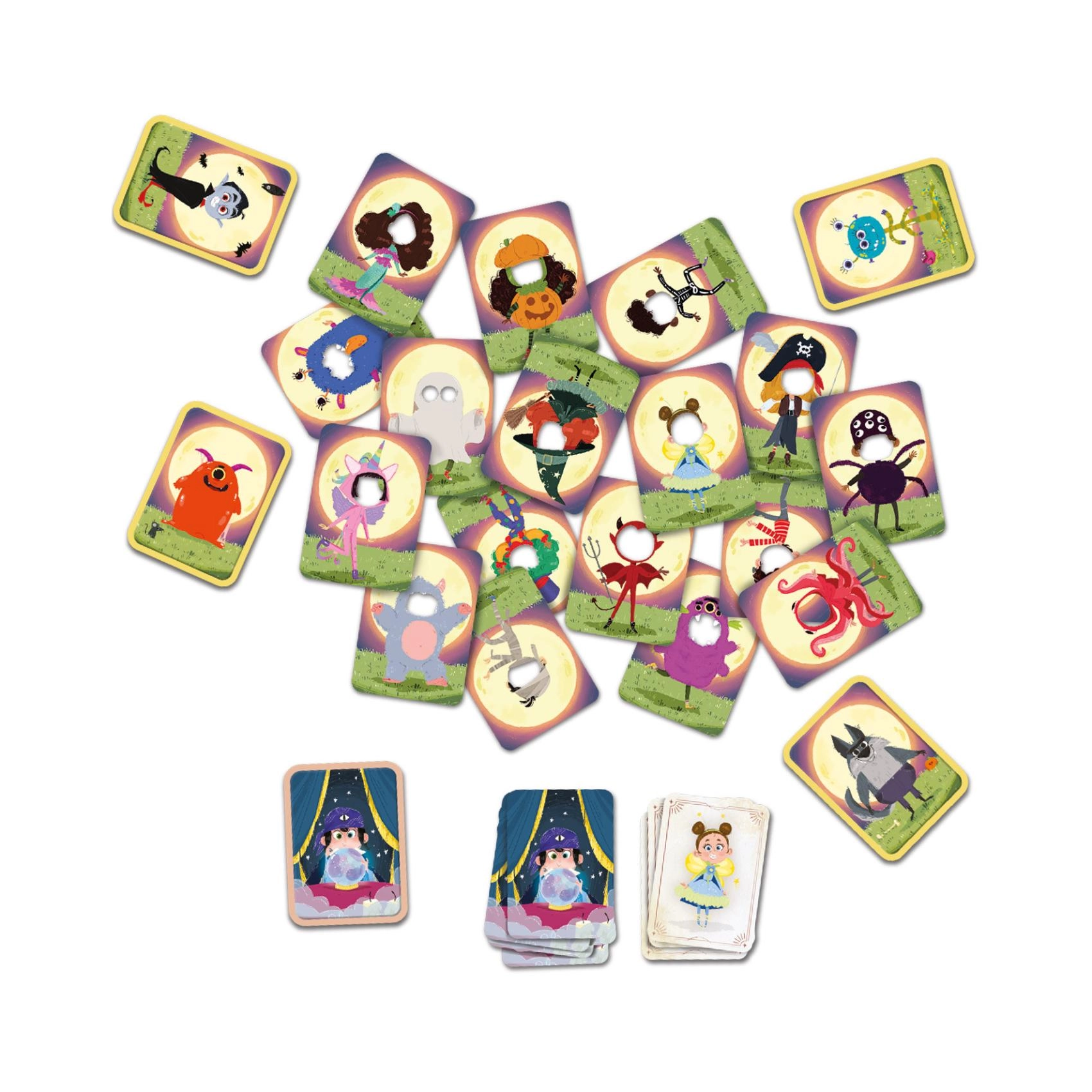 Cartonașele cu vrăjitoare, schelet, caracatiță sau dovleac fac din joc un spectacol vizual și invită la rejucare.