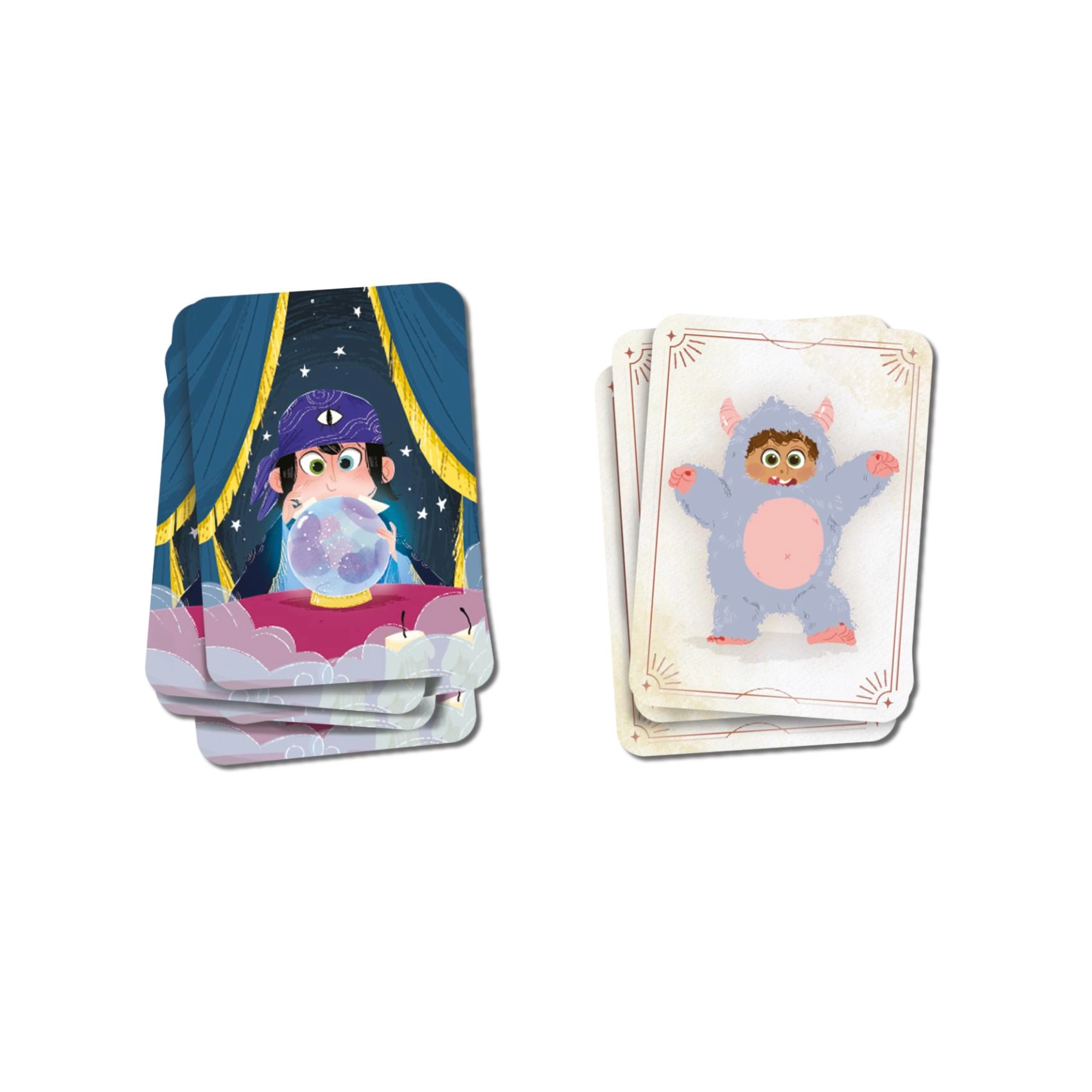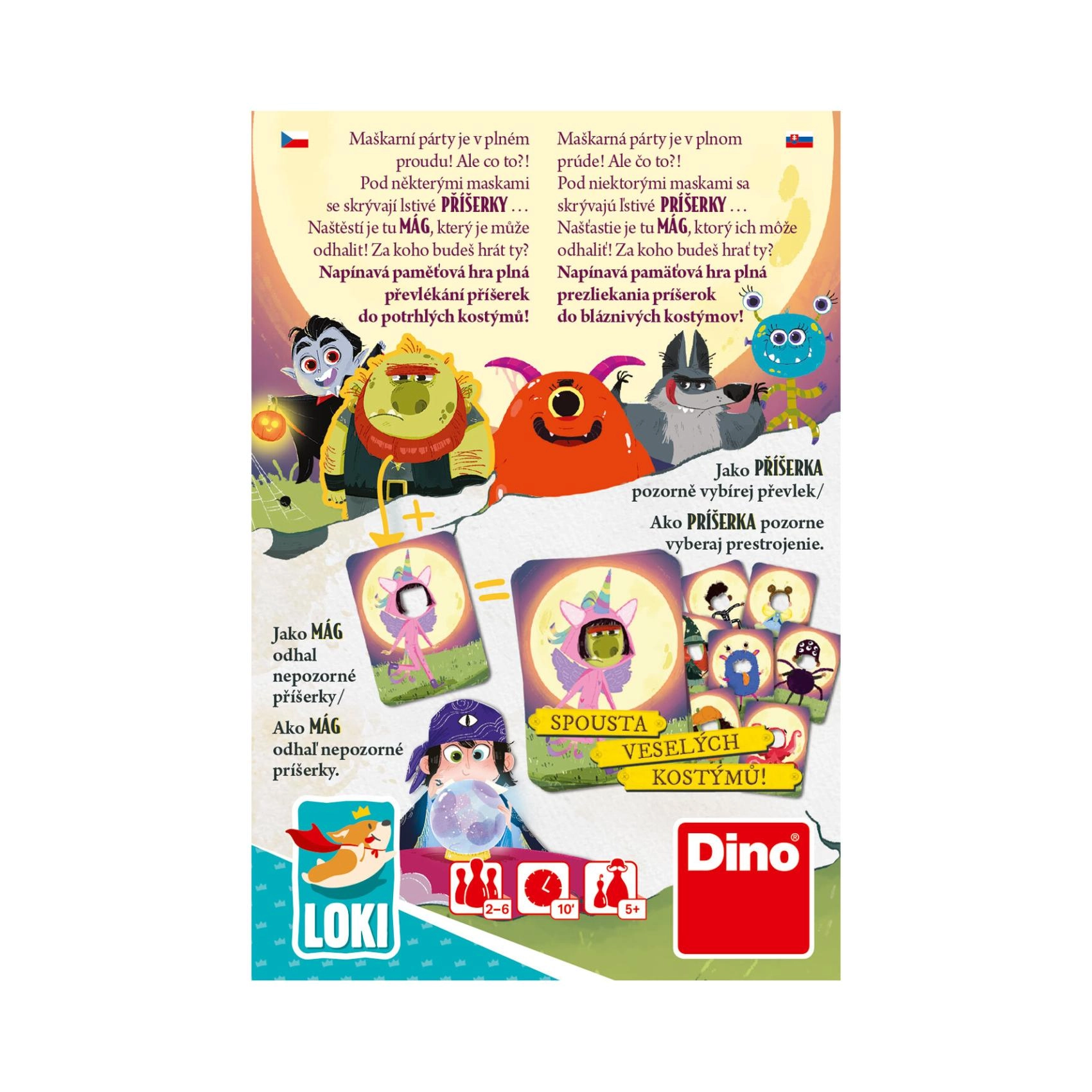 Un joc de familie amuzant pentru copii de la 5 ani, în care își exersează memoria și spiritul de observație. Intrați în rolul de mag sau monstru, urmăriți costumele colorate și descoperiți cine se ascunde în spatele măștii. Timp de joc rapid, aprox. 10 minute, ideal pentru petreceri, excursii și după-amieze cu prietenii. Pentru 2–6 jucători.
