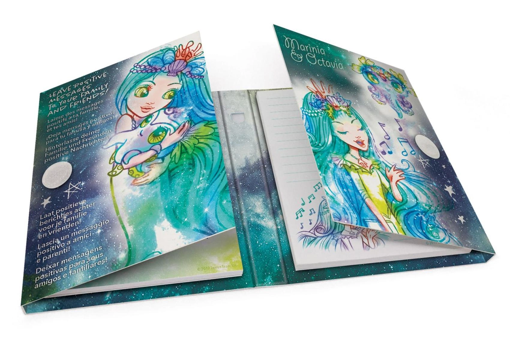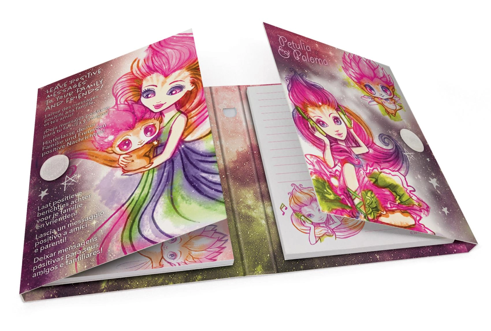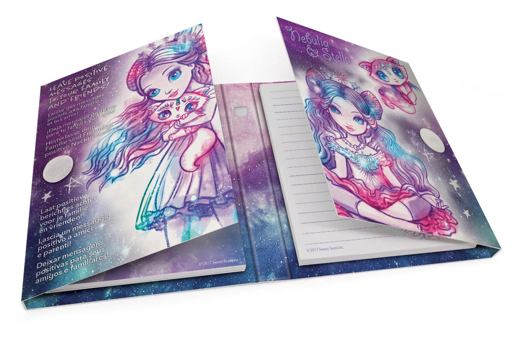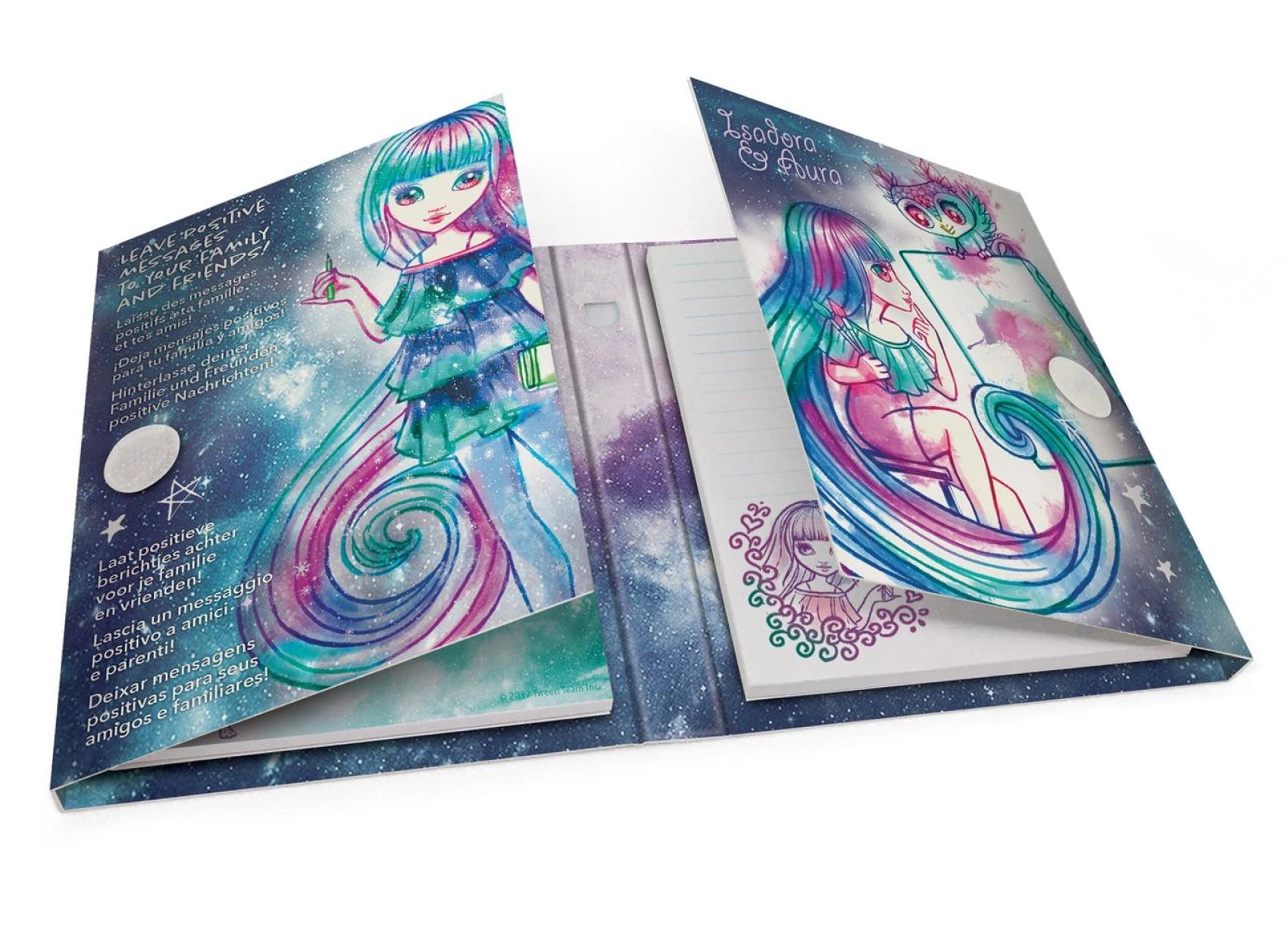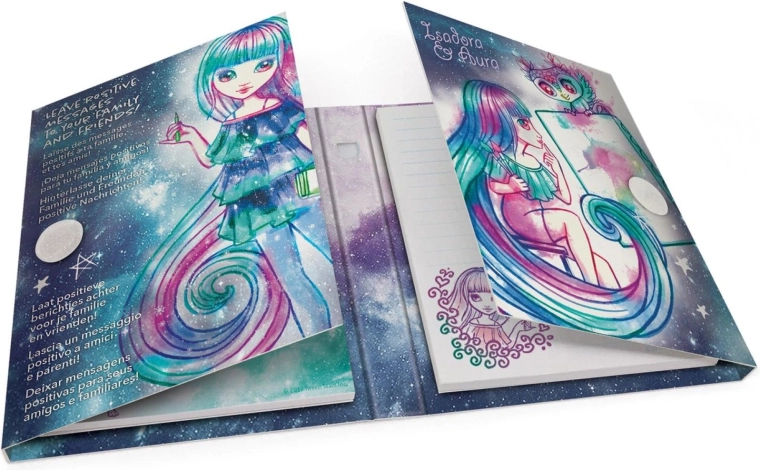 Coperți rigide cu ilustrații colorate și motive stelare îi vor încânta pe fanii galaxiilor magice și vor lumina fiecare însemnare.