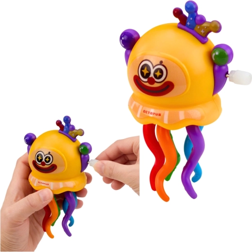 Mecanismul simplu cu întoarcere pune caracatița în mișcare – fără baterii, doar distracție pură și repetare la nesfârșit.
