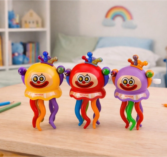 Vesela caracatiță tip clovn cu mecanism de întoarcere oferă copiilor multă distracție și le dezvoltă abilitățile. După o simplă întoarcere, jucăria pornește pe o suprafață plană, iar tentaculele sale colorate se mișcă ritmic. Fără baterii, ușor de folosit și cu design sigur și durabil, este un companion grozav pentru joaca zilnică, acasă sau în călătorii.