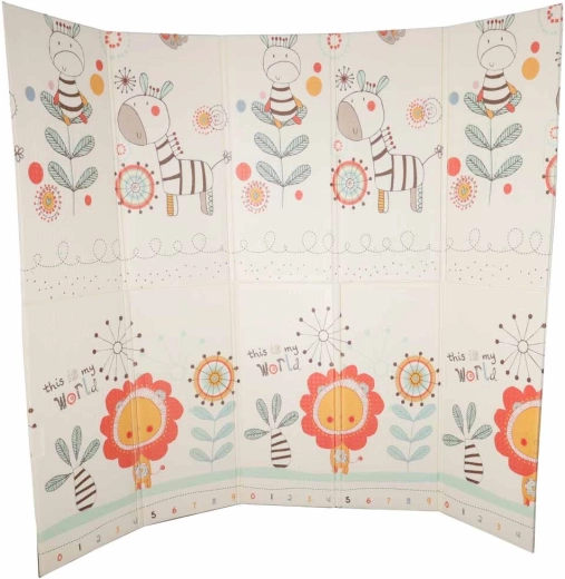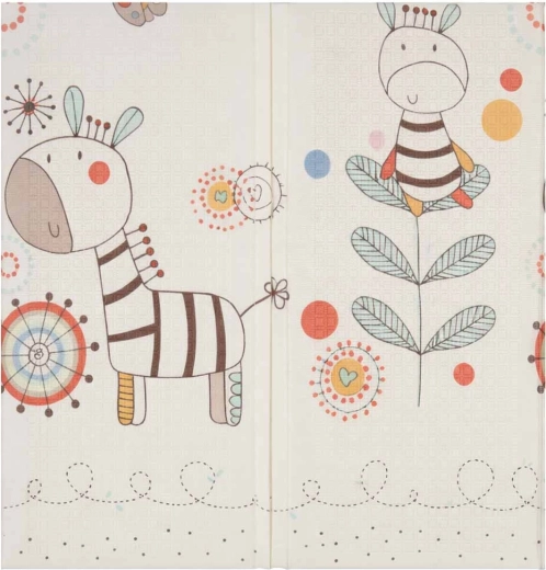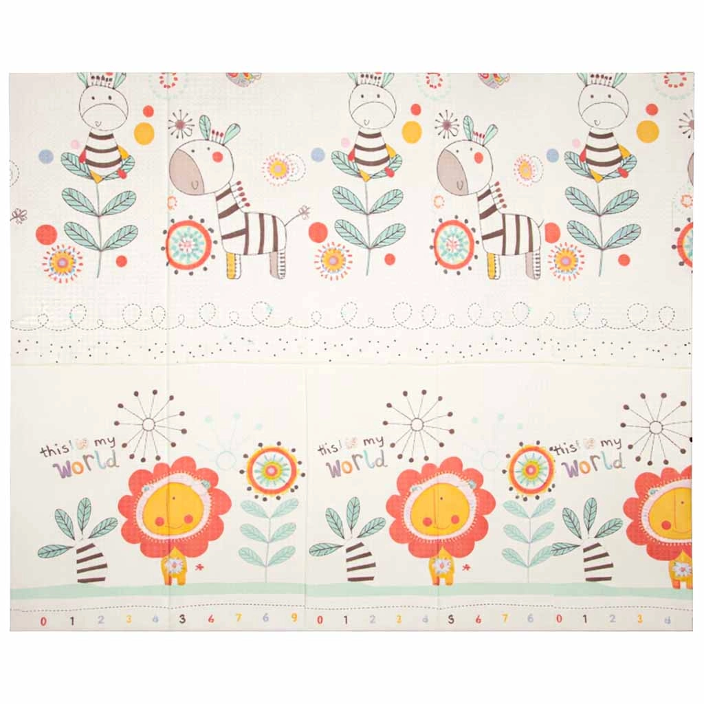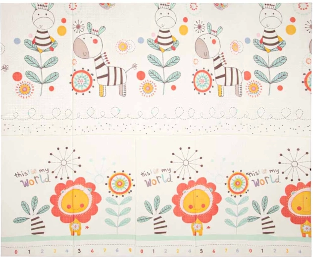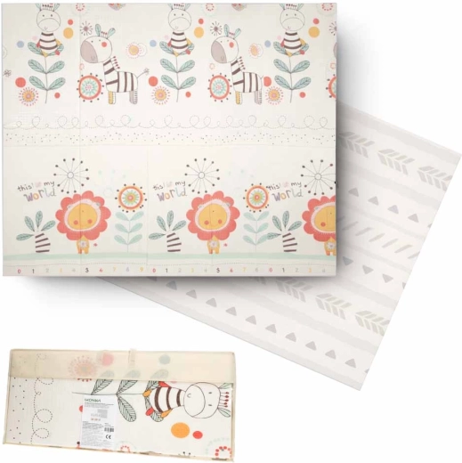 Execuția dublă față și forma pliabilă facilitează transportul și depozitarea. Suprafața antiderapantă, ușor texturată sprijină dezvoltarea motricității și susține mișcarea sigură. Materialul XPE este durabil, antialergenic și ușor de întreținut – este suficient să fie ștearsă cu o lavetă umedă.