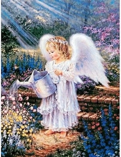 Pictura cu diamante este o activitate ideală pentru toate vârstele – nu sunt necesare abilități speciale. Cu ajutorul stiloului de aplicare așezi pietricelele pe pânza autoadezivă și preimprimată conform simbolurilor. Rezultatul este un tablou strălucitor cu motiv detaliat al îngerului cu stropitoare în grădină, care va ilumina orice interior.