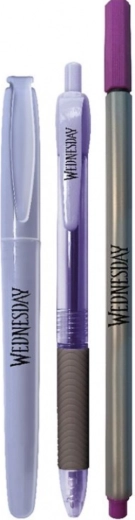 Set de scris stilat cu motivul Wednesday, ideal pentru școlari și fanii serialului. Conține o pix cu cerneală albastră, un liner subțire 0,4 mm pentru scriere precisă și un creion grafit HB cu mină rezistentă și formă triunghiulară ergonomică.