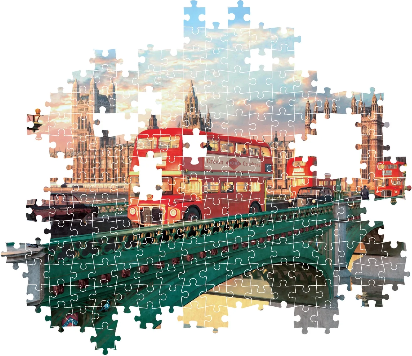 Datorită celor 500 de piese, puzzle-ul oferă o provocare plăcută pentru una sau două seri. Imaginea finală, de aprox. 49 × 36 cm, este perfectă pentru expunere, fie ca decorațiune pentru casă, fie ca un cadou original pentru fanii Londrei și ai monumentelor sale emblematice.
