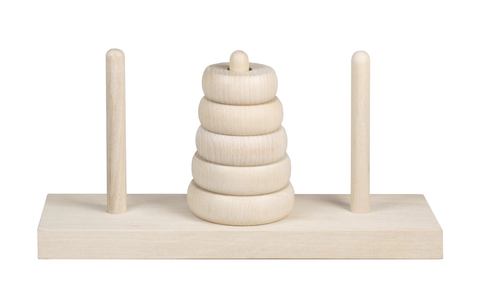 Inele netede, margini rotunjite și bază stabilă din lemn natural pentru joacă confortabilă și sigură.