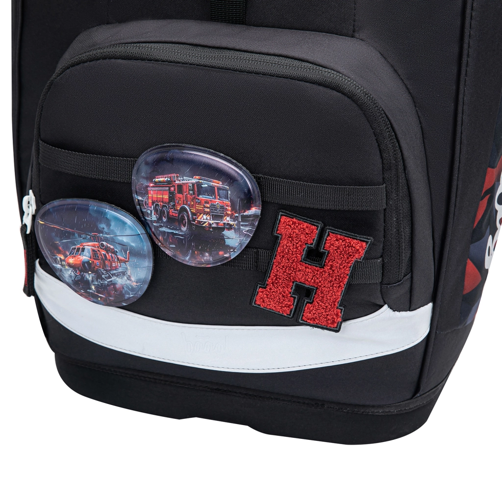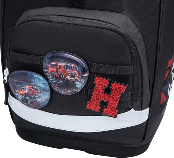 Organizarea internă include compartiment principal cu organizer și plăci de protecție pentru caiete, care urmează forma buzunarului din spate. Buzunarul frontal termoizolant menține gustarea proaspătă mai mult timp și previne transferul mirosurilor. Clapeta magnetică se închide singură, astfel încât deschiderea și închiderea sunt ușor de gestionat chiar și de către un elev de clasa I. Designul este completat de insigne interschimbabile (Baaglies), care permit personalizarea aspectului.