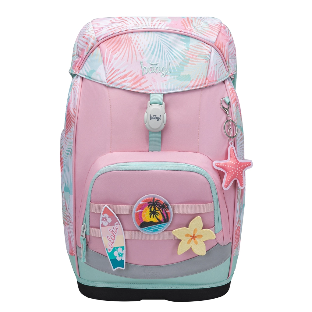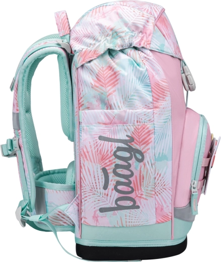 Set școlar ergonomic ușor BAAGL Airy Plus Sunset pentru ciclul primar include rucsac cu sistem dorsal ajustabil, penar cu un singur etaj și săculeț practic pentru pantofi de schimb sau sport. Rucsacul din material reciclat, rezistent la apă are greutate redusă sub 1,2 kg, buzunar termo pentru gustare, închidere magnetică și evidente elemente reflectorizante pentru siguranță.