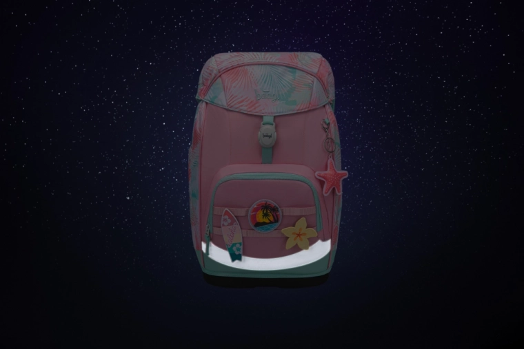 Rucsac, penar cu un singur etaj și săculeț asortate cromatic. Construcție durabilă, rezistentă la apă, cu elemente reflectorizante și certificare GRS pentru o alegere sustenabilă.